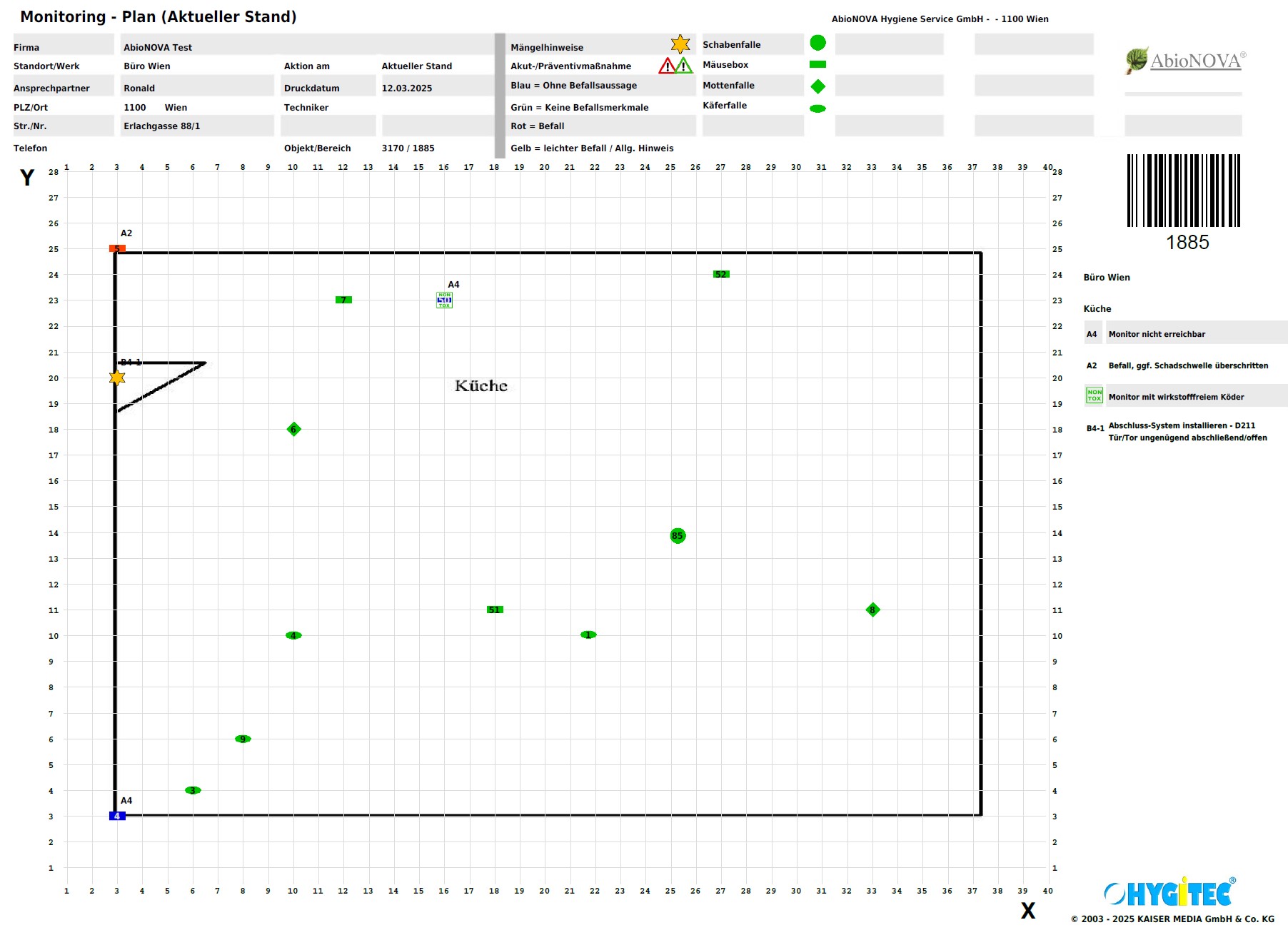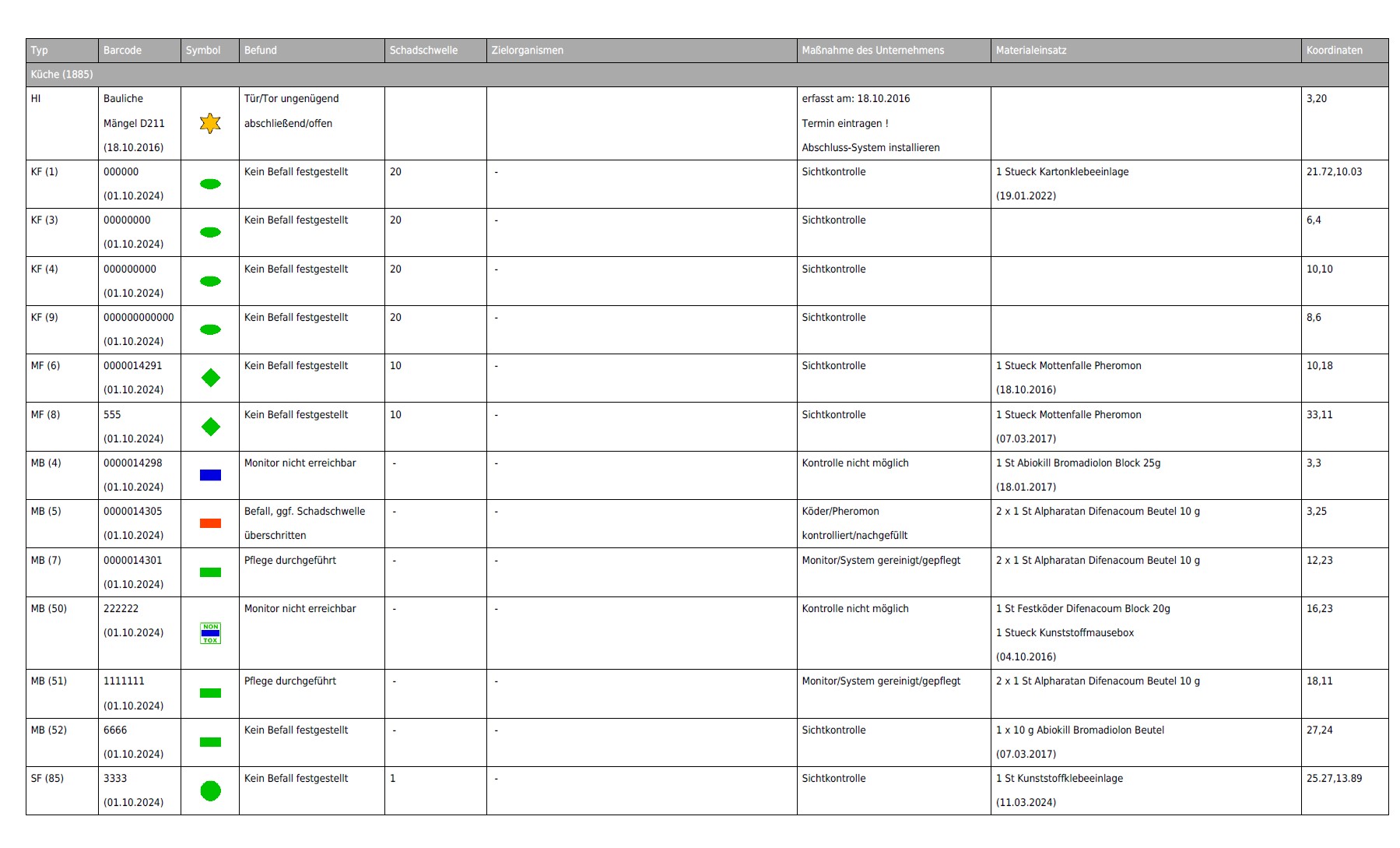 online Überblick über unsere Leistung der Schädlingsbekämpfung haben. Es wird der Zustand, Anzahl und Position der einzelnen Stationen in einem Objekt inkl. Plandarstellung angezeigt.